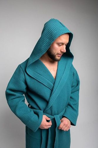 Халат вафельный PandaHug Оrlando малахит с капюшоном