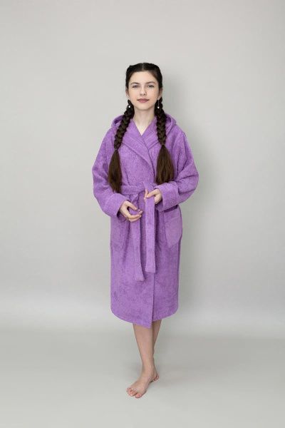 Халат махровый детский с капюшоном сиреневый