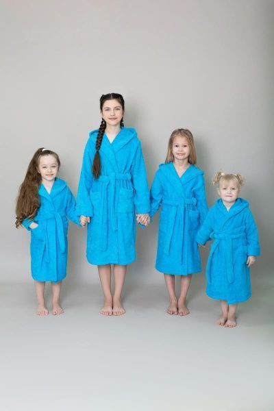 Халат махровый детский с капюшоном морская волна