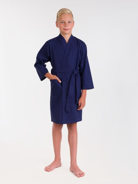 Халат вафельный детский темно-синий