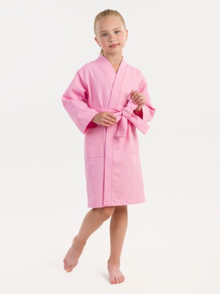 Халат вафельный детский розовый