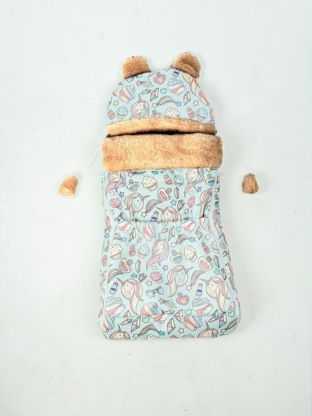 Конверт детский меховой на выписку "Единороги" 82*42 (до 6 мес), 100*46 (до 1 года)