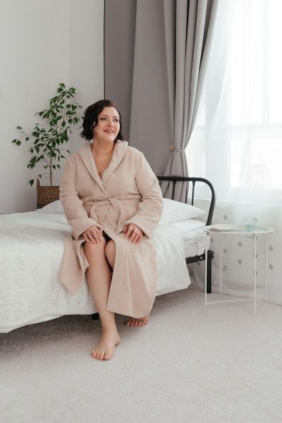 Халат махровый женский с капюшоном бежевый