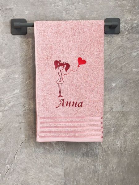 Полотенце с вышивкой 50*90 "Анна" розовое