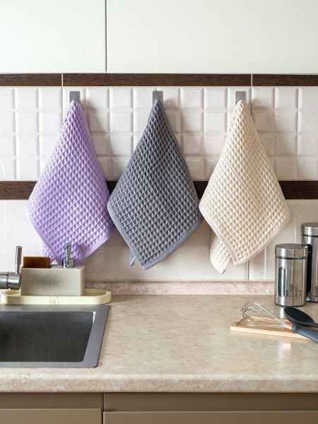 Набор вафельных полотенец 3 шт (30*60) сиреневый, серый, бежевый