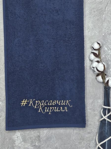 Полотенце с вышивкой 70*140 "красавчик" Кирилл темно-синее