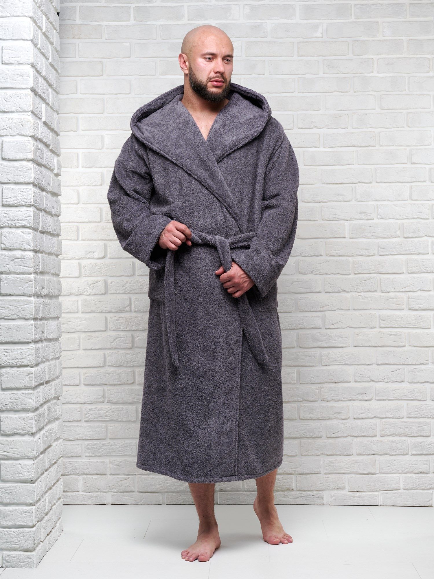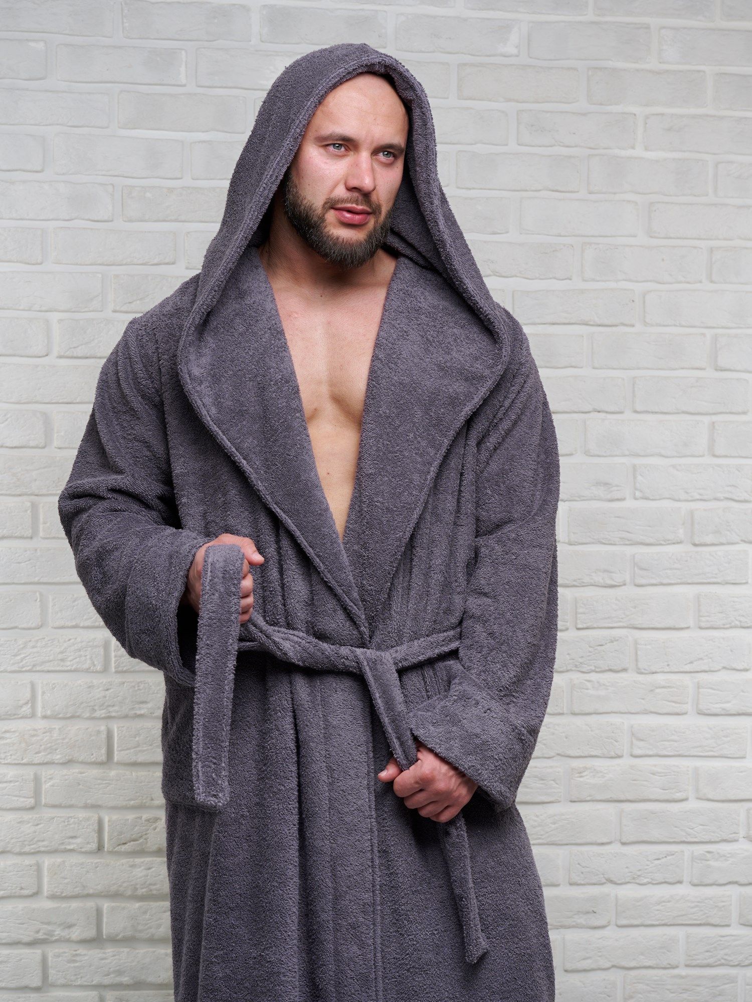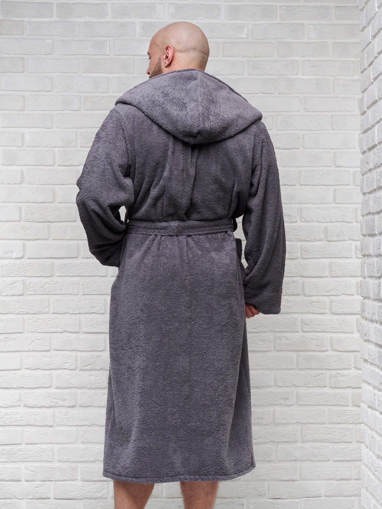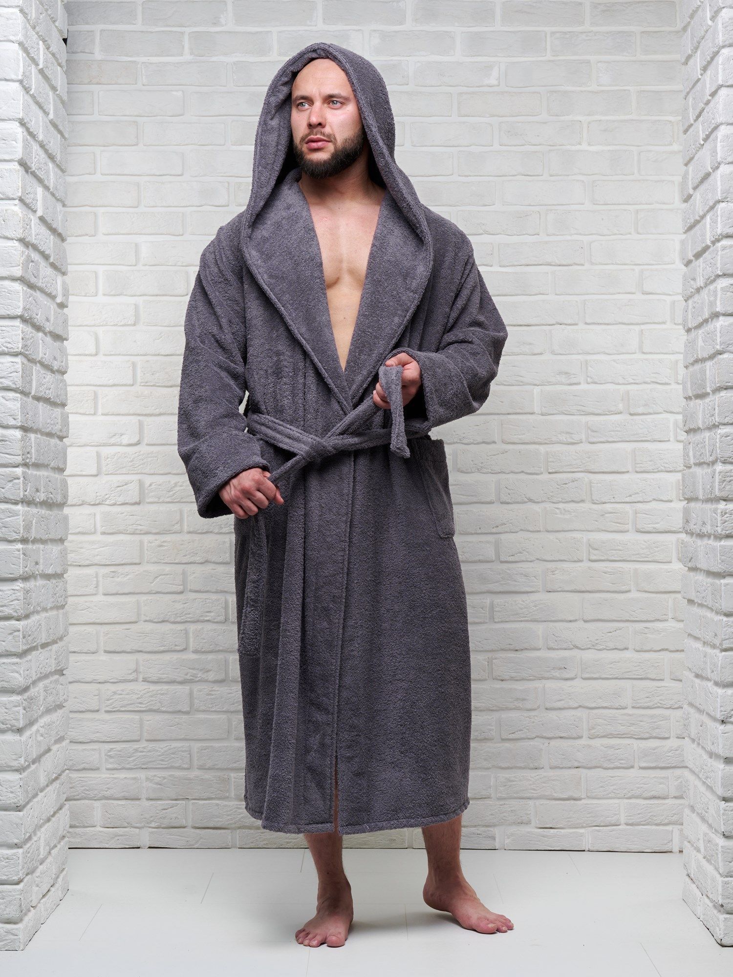Халат мужской махровый PandaHug с капюшоном, темно-серый