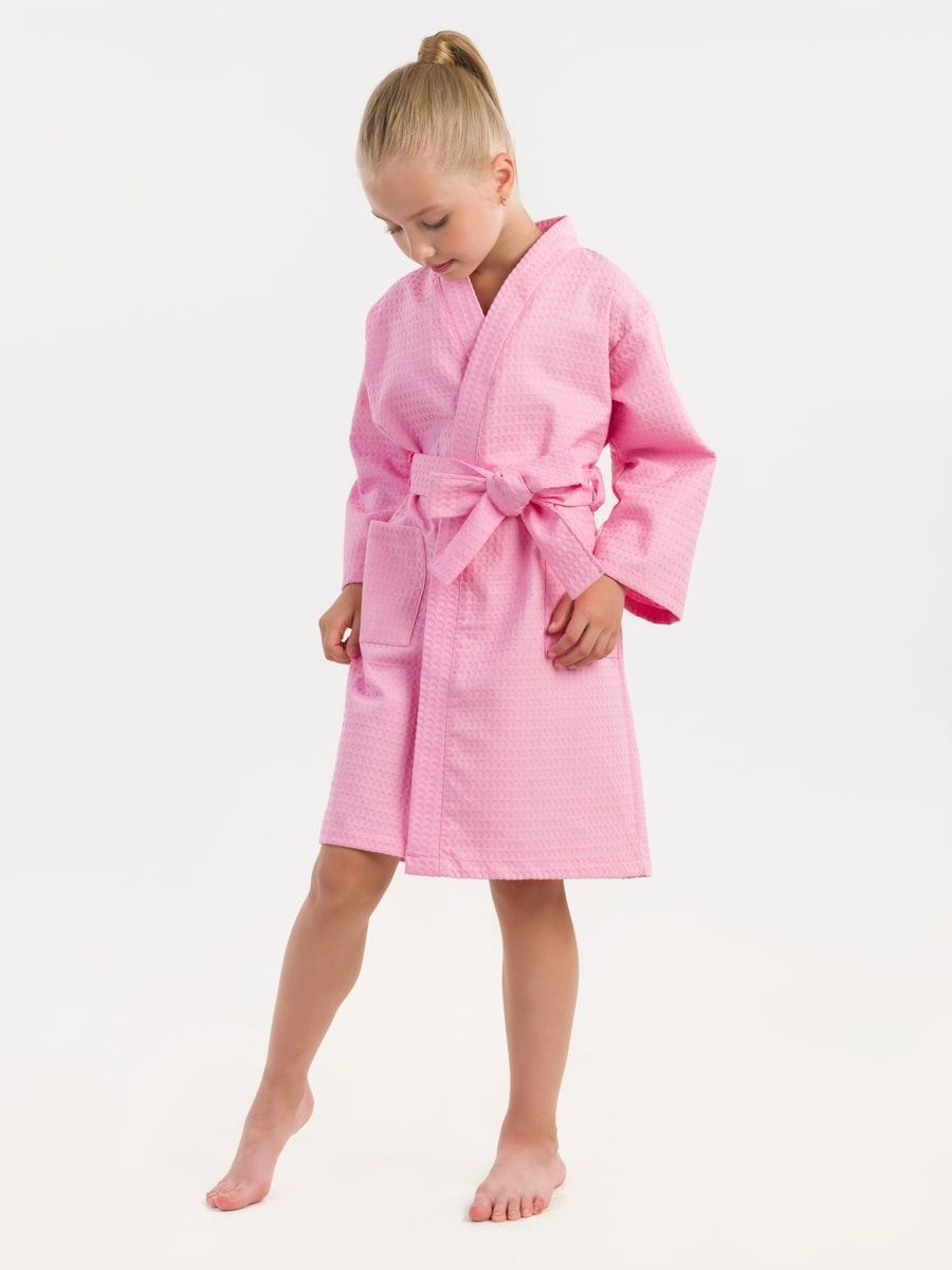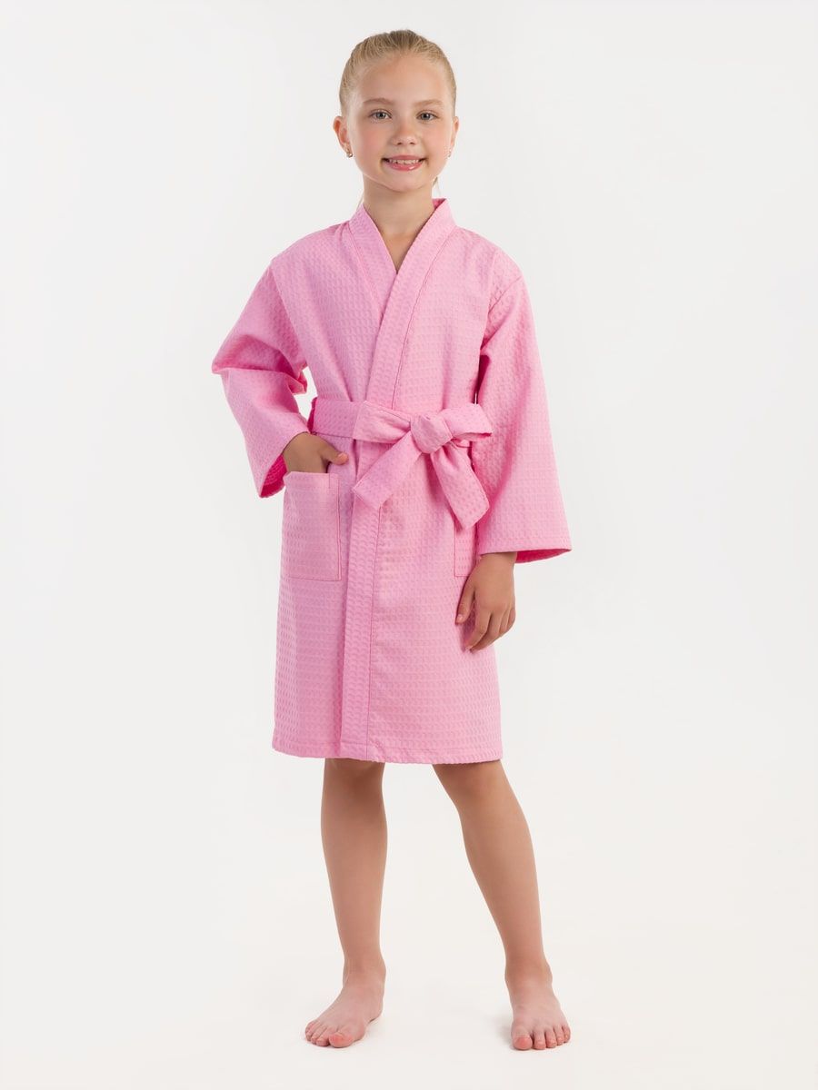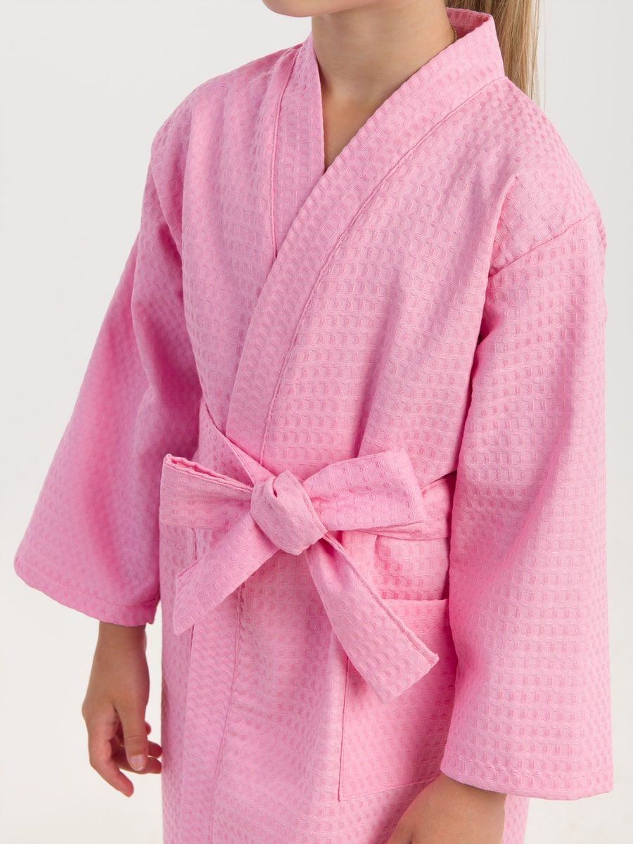 Халат вафельный детский розовый