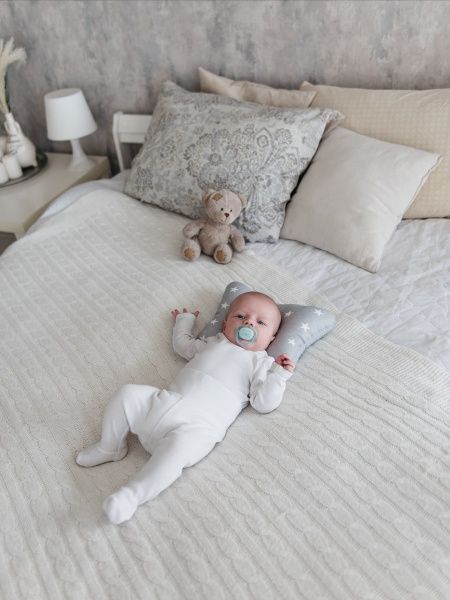 МАЛЮТКА – это удобная и полезная подушечка для самых маленьких детишек. Необычная форма в виде бабочки помогает держать головку на подушечке во время сна или бодрствования и поддерживает шею, обеспечивая правильное развитие.