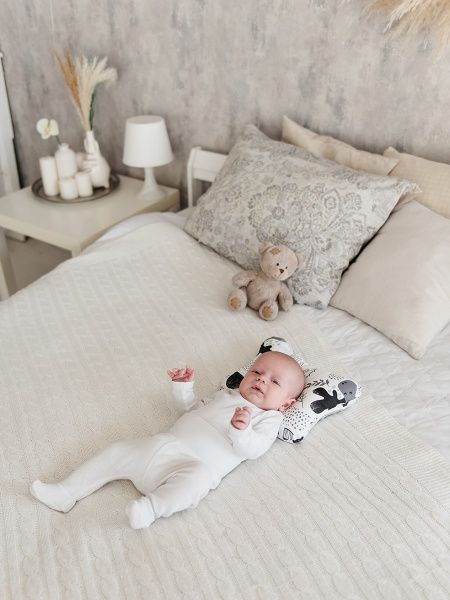 МАЛЮТКА – это удобная и полезная подушечка для самых маленьких детишек. Необычная форма в виде бабочки помогает держать головку на подушечке во время сна или бодрствования и поддерживает шею, обеспечивая правильное развитие.