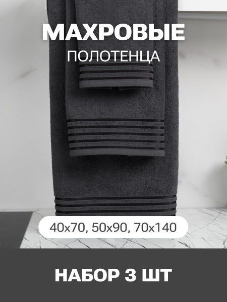Набор Полотенец махровых PandaHug Cozy Stripe темно-серое 140х70, 90х50, 40x70 пл. 400 гр м2