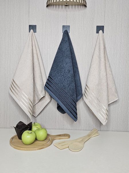 Набор махровых полотенец 3 шт (40*70) беж, т.сер, беж, полоса