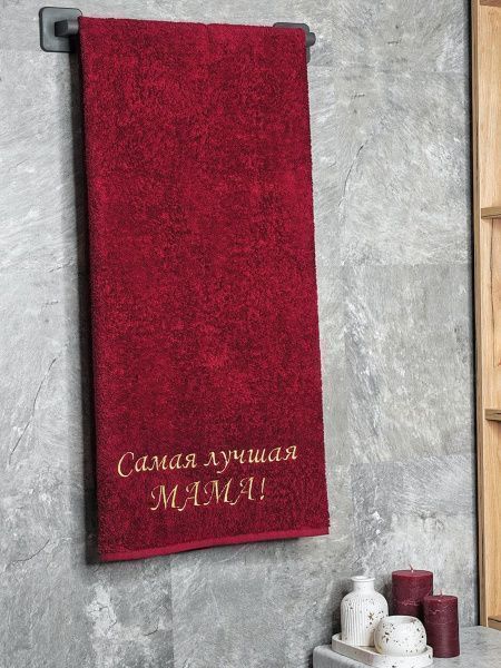 Полотенце с вышивкой 70*140 "самая Лучшая мама" бордо POL/Лучшая_мама